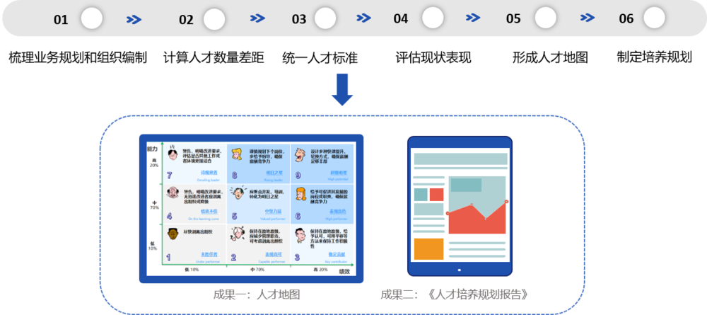 通过对组织和人才进行盘点,运用人才评价的多种测评技术,评估组织内部人才的数量和质量,识别关键岗位与核心人才,形成战略人才地图、人才培养规划,为打造组织能力提供清晰的方向性指导。